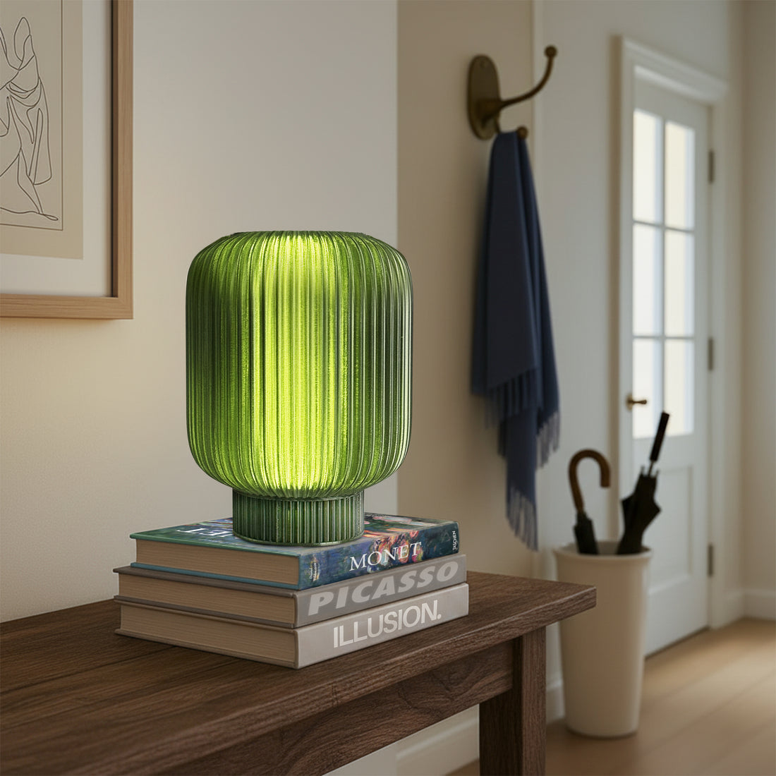 Harmony Table Lamp – Green Ribbed Design, Dimmable LED, Eco-Friendly