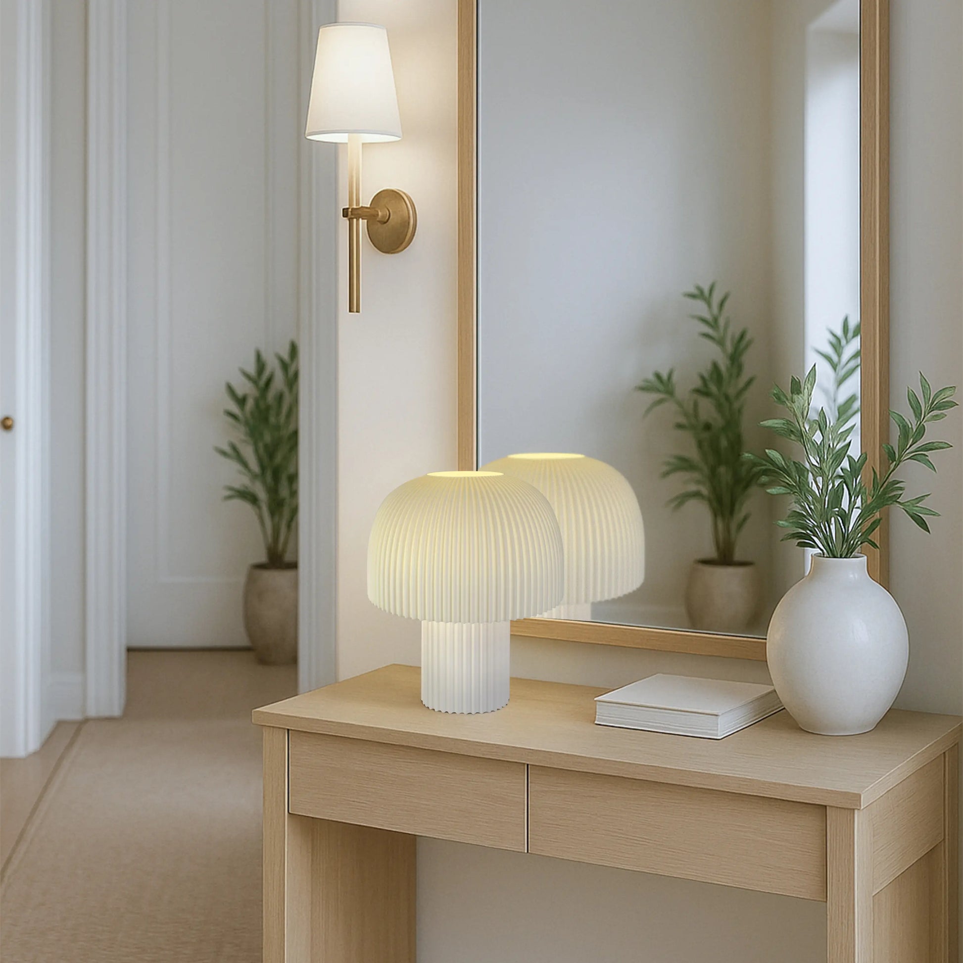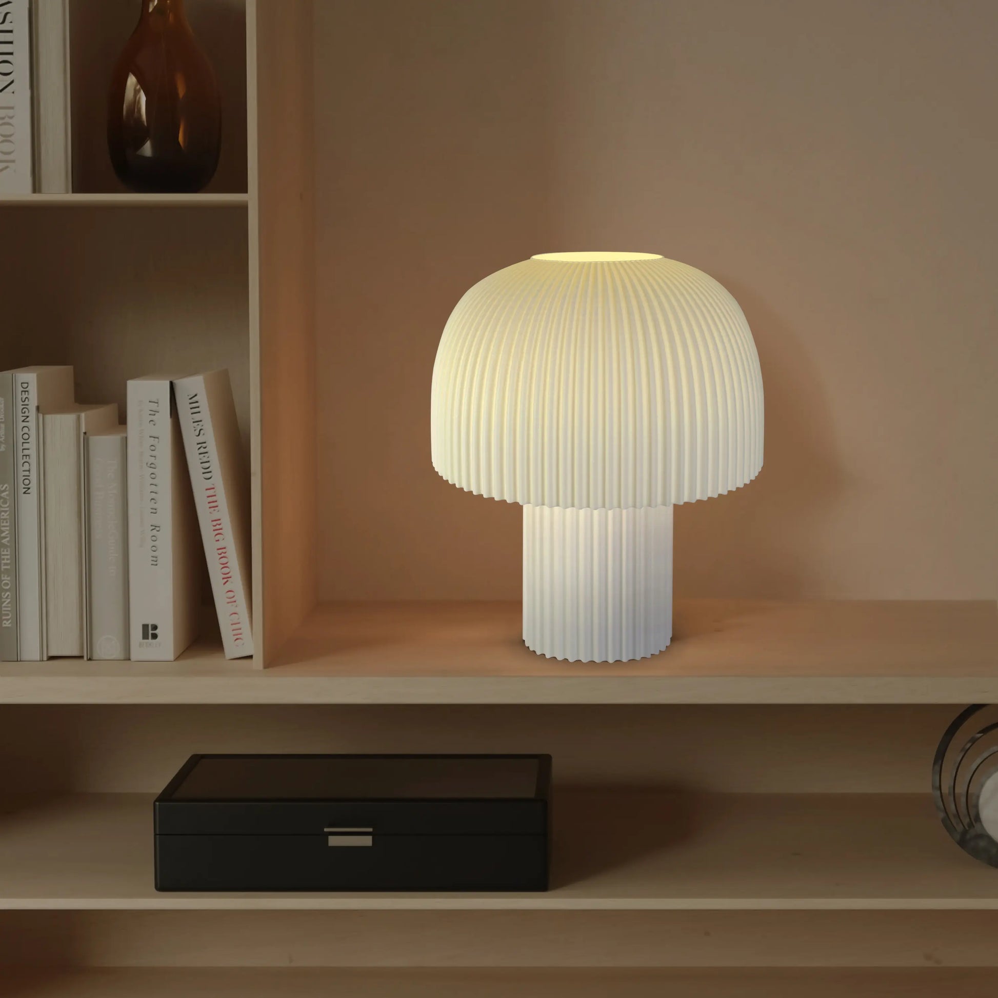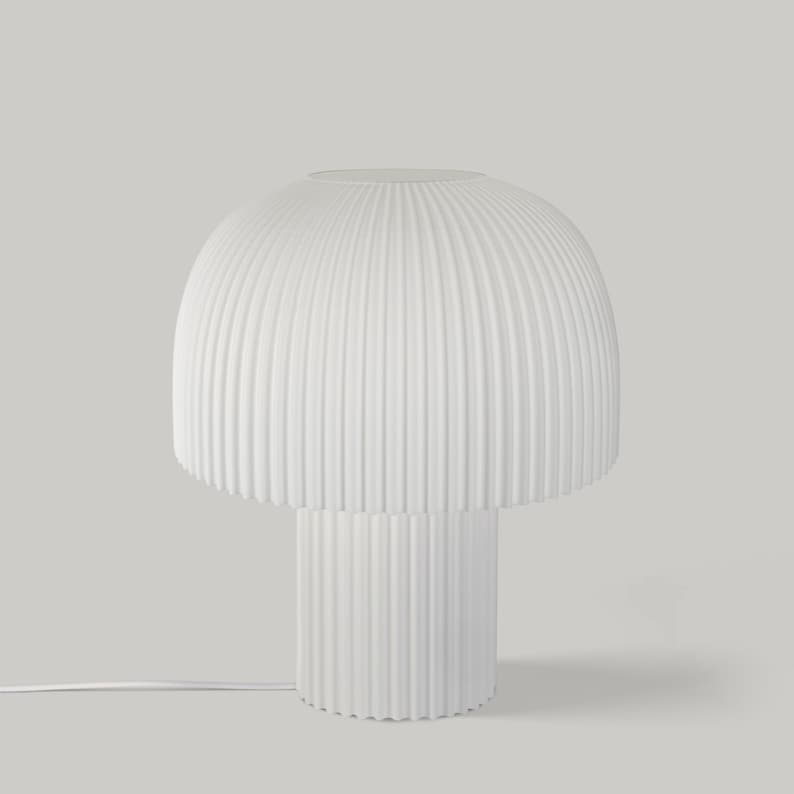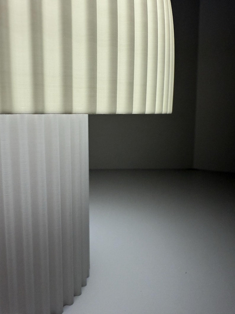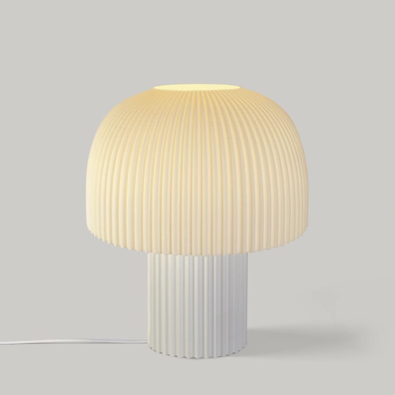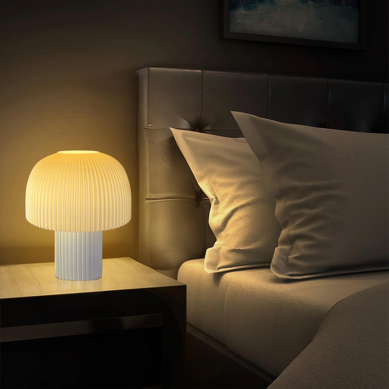 Modern Ribbed Mushroom Table Lamp – Dimmable LED, Handcrafted in LA